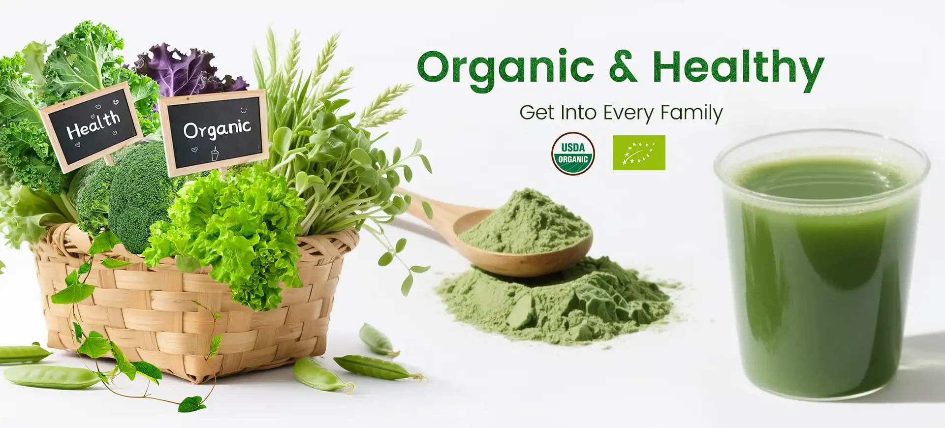 Appearance: Organic wheatgrass juice powder has a green color and a fine powder shape. It should be uniform in appearance, dry and free from lumps.