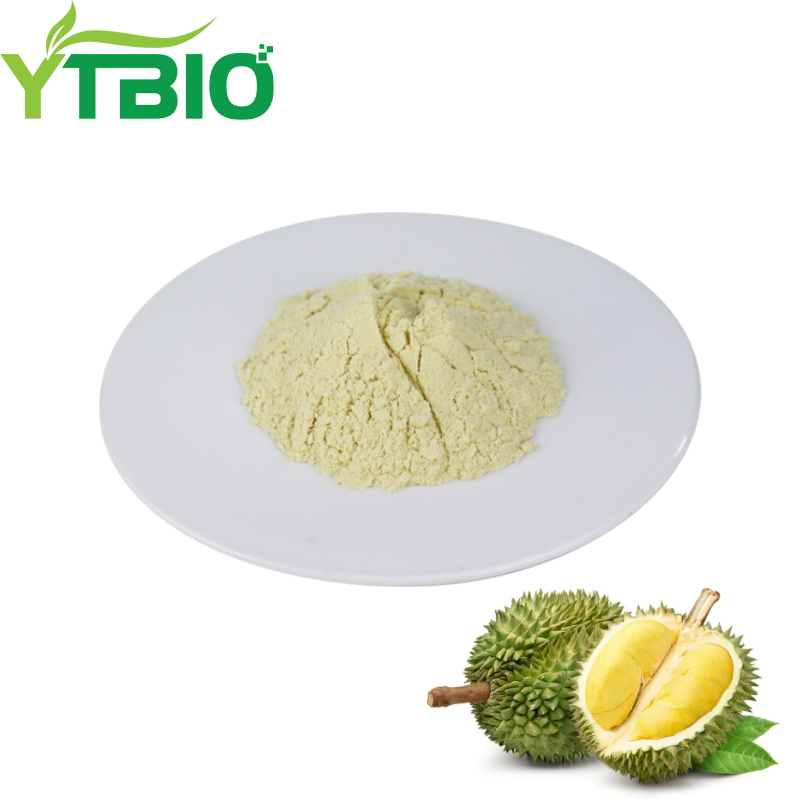 YTBIO's durian fruit powder is a natural fruit powder made from ripe, fresh durian pulp using freeze-drying/spray-drying processes. It has a pale yellow to creamy yellow fine powder appearance and retains the unique rich aroma, full-bodied taste, and smooth texture of durian. Durian fruit powder is rich in vitamin C, B vitamins, potassium, calcium, iron, and other minerals, as well as dietary fiber and natural sugars. It can be widely used in solid beverages, baking fillings, ice cream, dairy products, candies, and flavorings, providing natural durian flavor and nutritional support for food development.